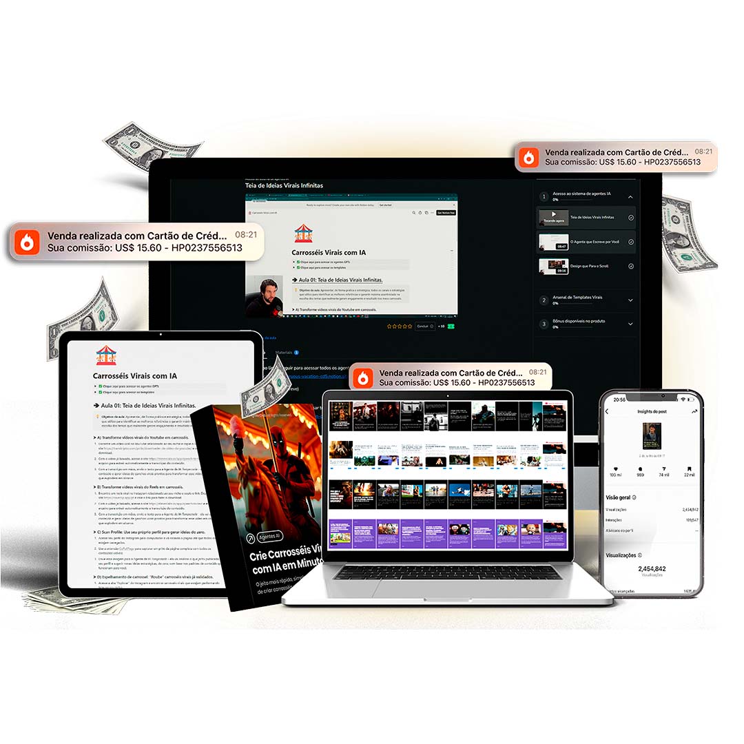 Descubra o sistema exato que já gerou milhões de visualizações e milhares de reais em vendas diretas no Instagram — agora você pode começar a faturar mesmo que nunca tenha criado um carrossel viral na vida.