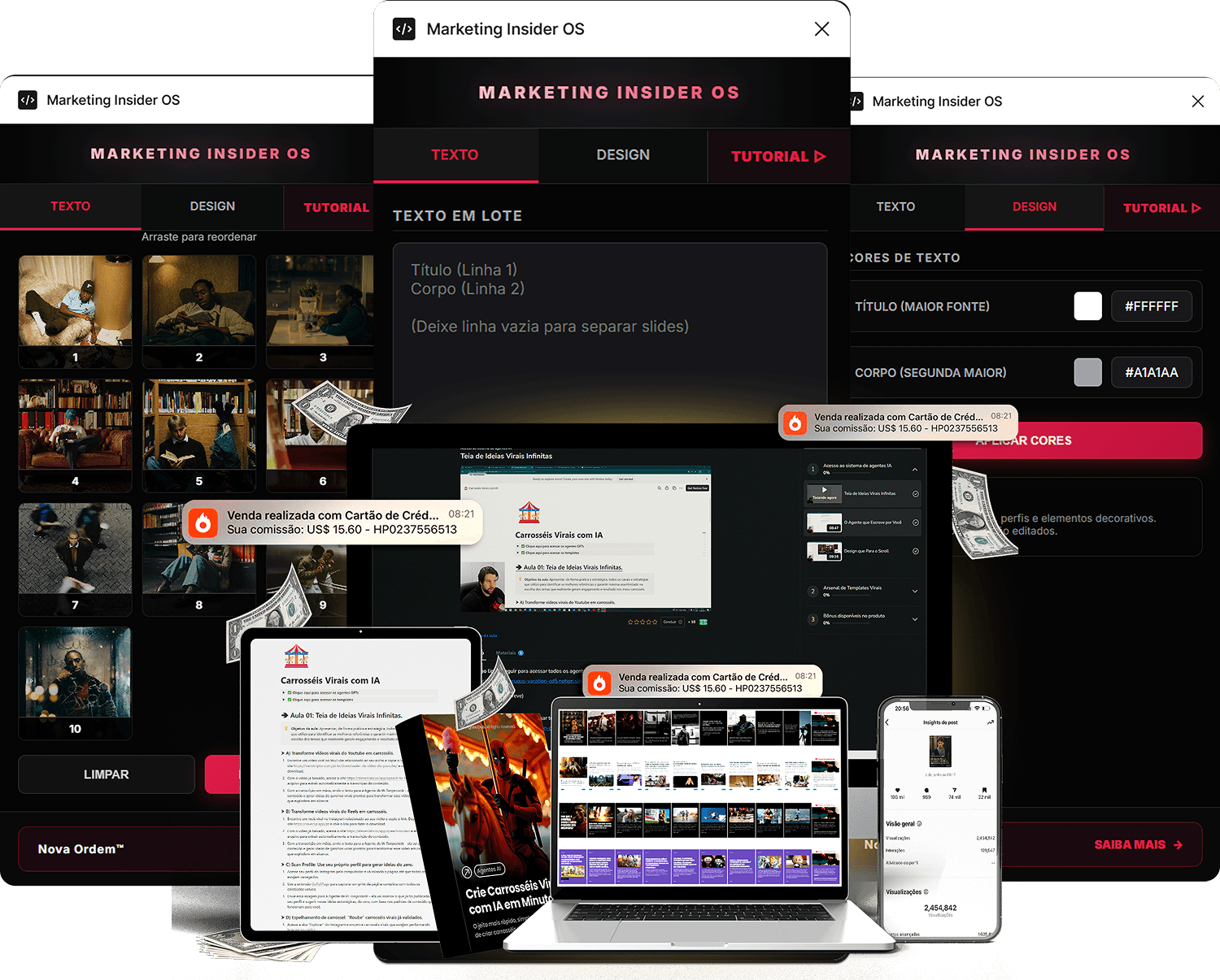 Designs validados em batalha, não criados pra serem "bonitinhos". Templates testados com posts que chegaram a +100 mil curtidas no orgânico. Você só pluga a copy, edita e publica.